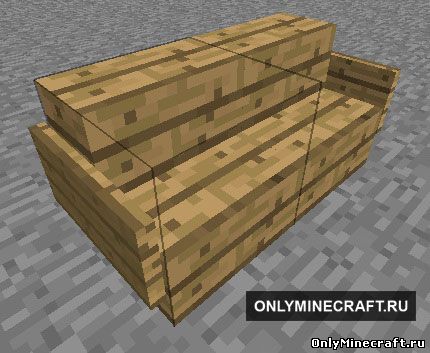 Простейший вариант дивана в Minecraft состоит из деревянных ступеней и табличек. Две (а если хотите, и более) ступеньки служат здесь корпусом, а таблички играют роль подлокотников. Несложно догадаться, что если использовать всего одну ступеньку, получите обыкновенное кресло. Вместо табличек вполне можно использовать, например, деревянные блоки. Они же дают возможность сделать угловой диван. А использование полублоков позволяет расширить этот предмет мебели. Маленькая заметка: сервер Майнкрафт будет не против, если вы пустите в дело плагин Chaircraft, который даёт возможность посидеть на стульях и диванах.
