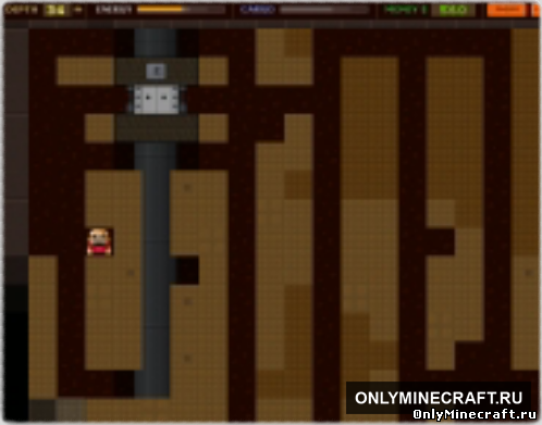 Основная ваша задача, это капать, капать туннели, искать всякую шняжку^^ Вы походите к лифту, спускаетесь, а дальше просто нажимаете на стрелки и управляем усатым дядей, а он уже сам будет копать блоки. Так можно спуститься пониже и найти алмазики. Да-да. они там тоже есть!